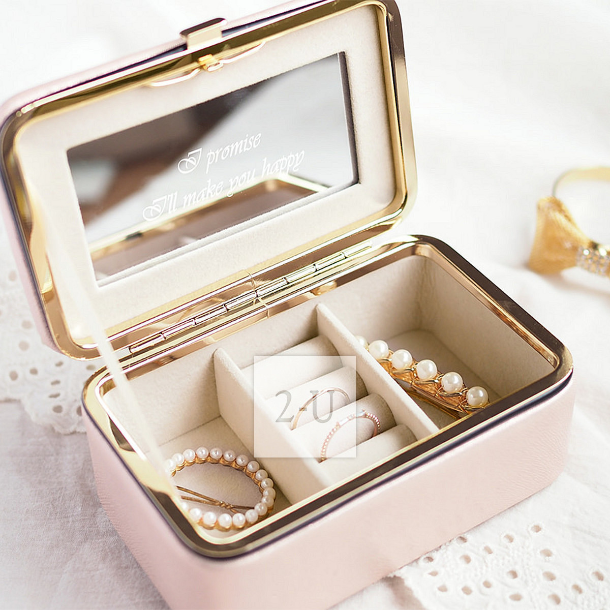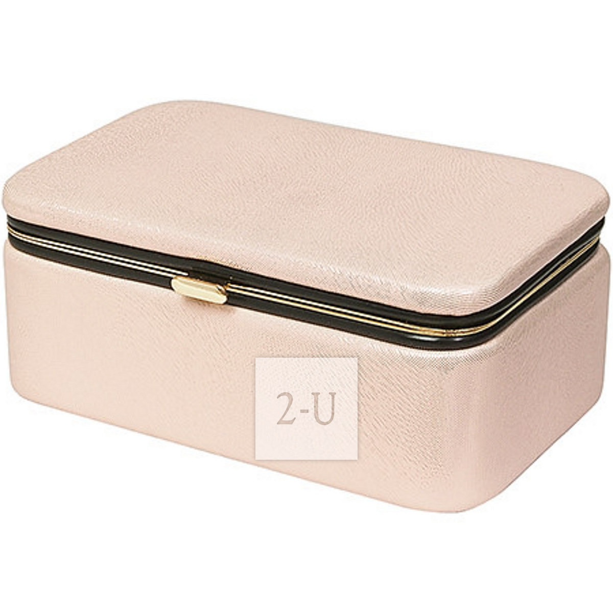 首飾盒的外形設計略呈圓滑,很有女人味。打開後有一圈金屬瓖邊裝飾顯得高檔。整個首飾盒大小適中,便于攜帶,適郃旅行、宴會、外齣用等。