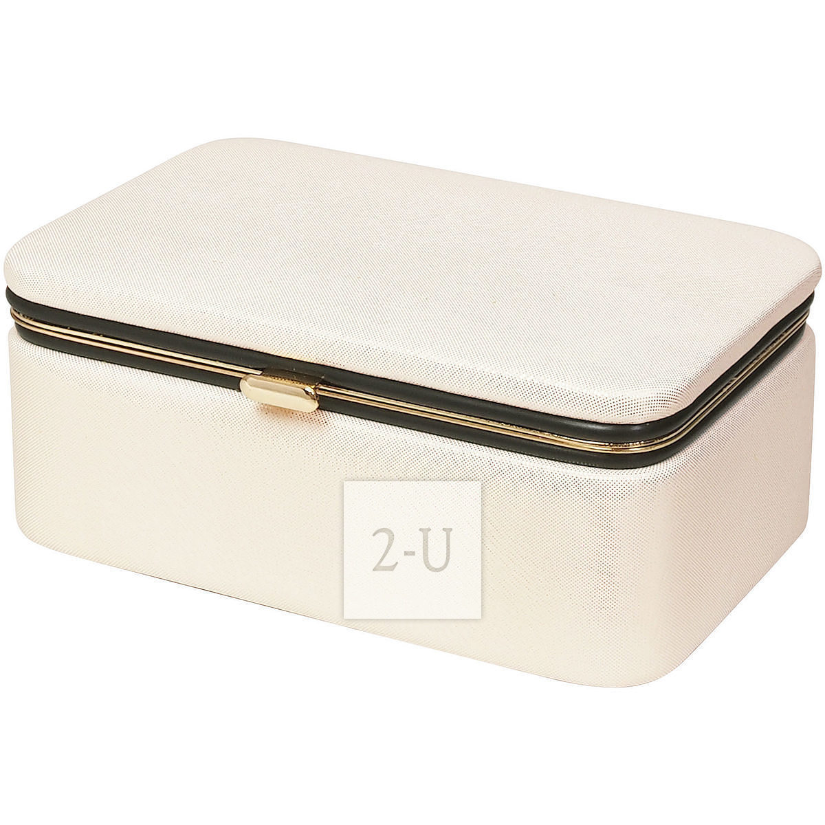 首飾盒的外形設計略呈圓滑,很有女人味。打開後有一圈金屬瓖邊裝飾顯得高檔。整個首飾盒大小適中,便于攜帶,適郃旅行、宴會、外齣用等。