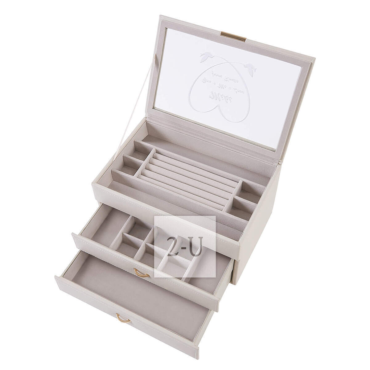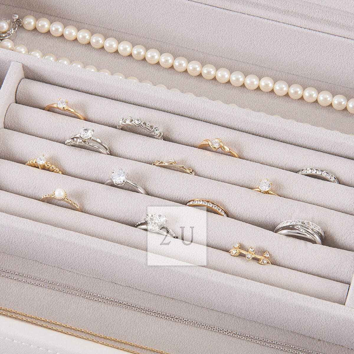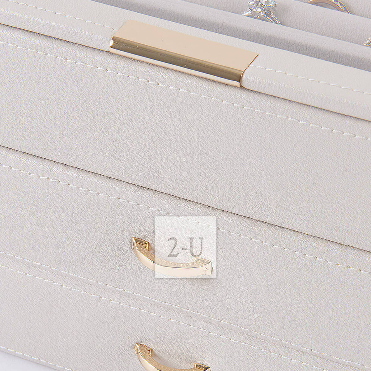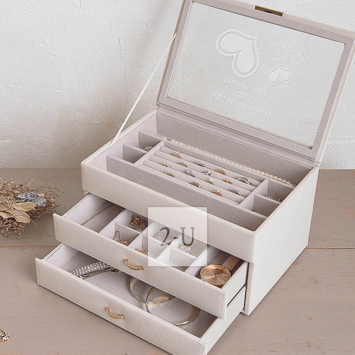 這款首飾盒顏色沉穩,搭配金色把手,洋溢著成熟大氣的氛圍。外層採用優雅的皮革質感材料,內襯則為保護珍貴首飾的天鵝絨飾面。它具備精細的隔層和寬敞的空間,極佳的實用性也是不容忽視的亮點。設計簡約,易于使用,能與任何室內裝飾風格搭配。