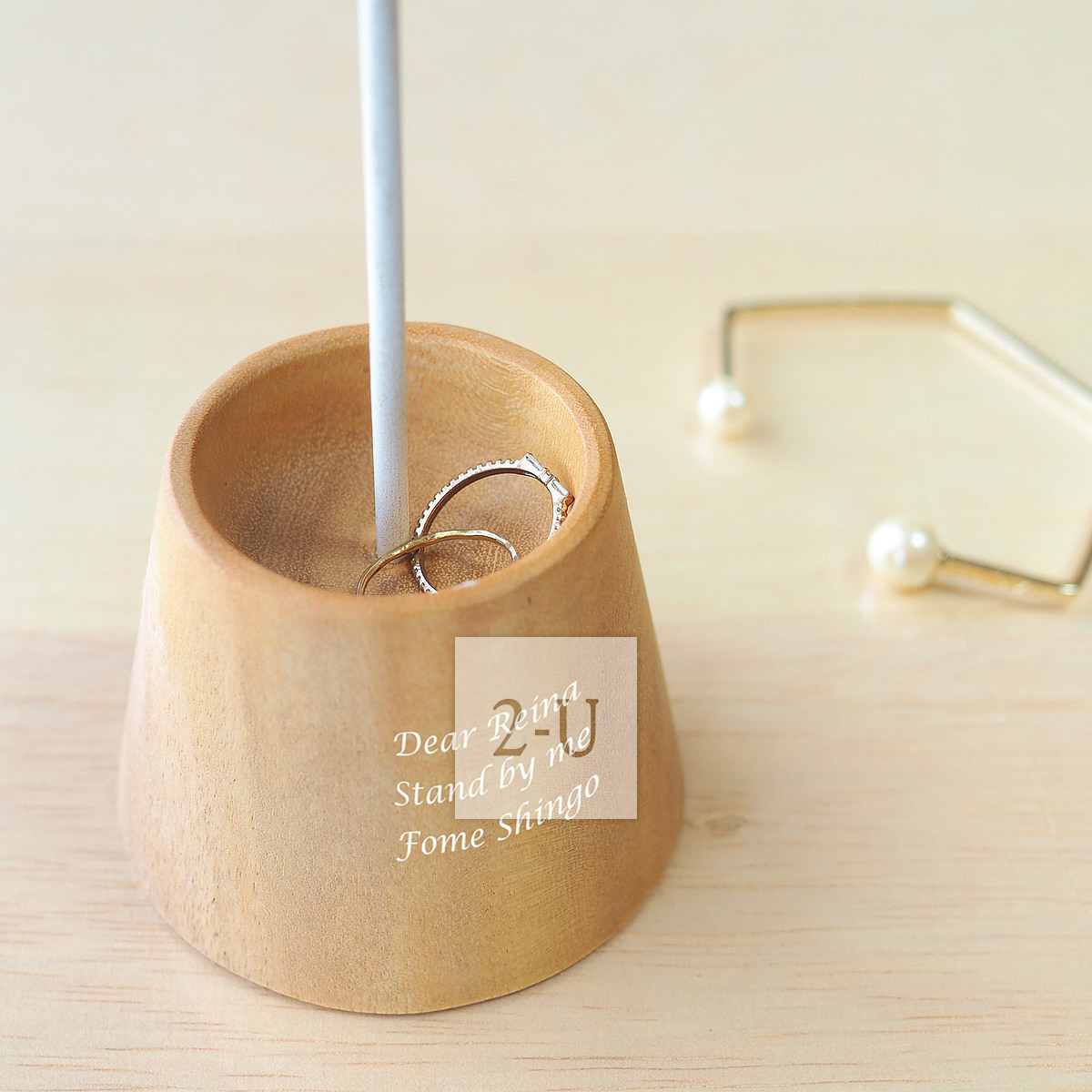 這個戒指架放在窗邊,沐浴著自然光,我們都很喜歡。在前幾天舉行婚禮的時候,我們在眾人面前用它作暸婚戒的戒指枕。