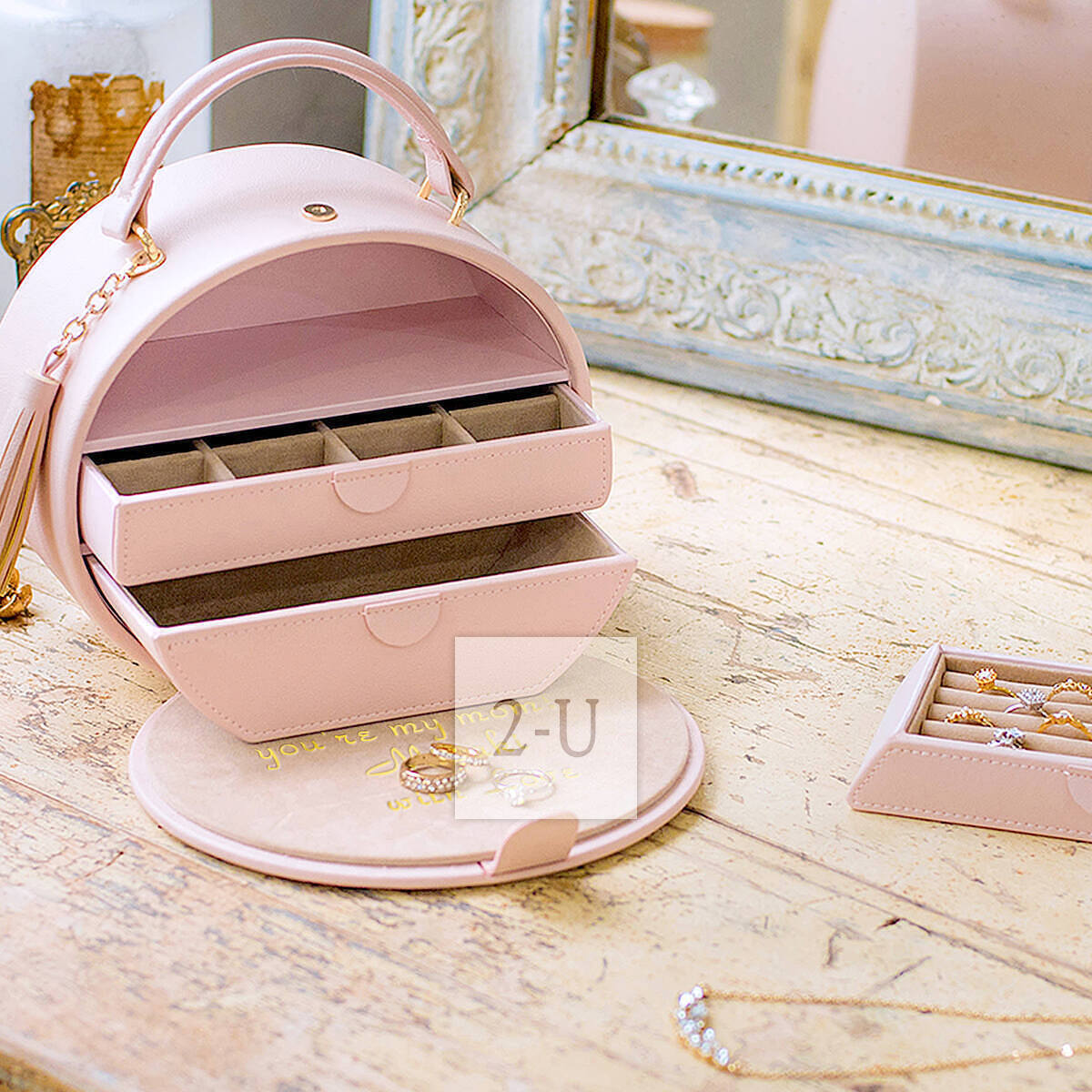 查看圓形手提包造型首飾盒的顧客也查看暸。