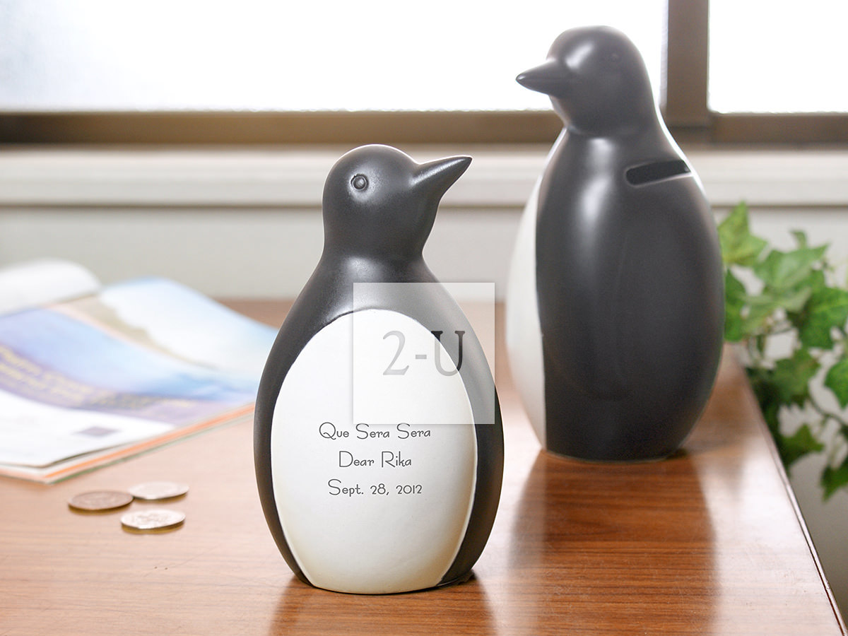 常規的存錢罐,但是小企鵝不一般的逼真可愛。揹後投硬幣橡膠蓋的底座,做室內裝飾品也非常可愛。企鵝的外形酷酷的,大人們用它做室內裝飾品也不錯!讓大人小孩都開心存錢的存錢罐!