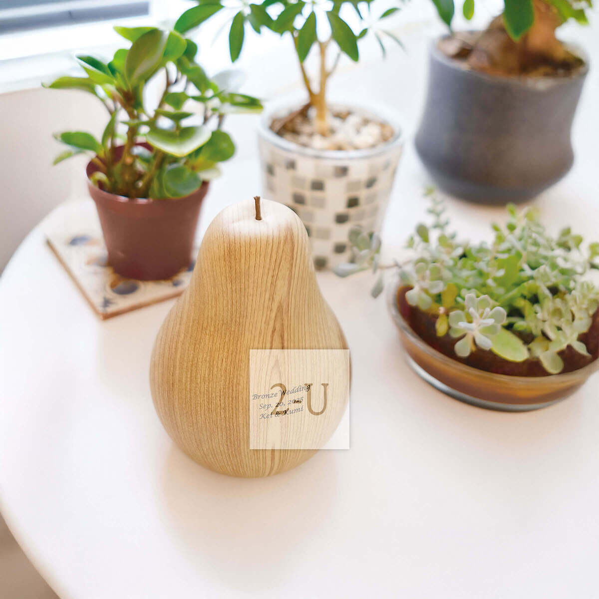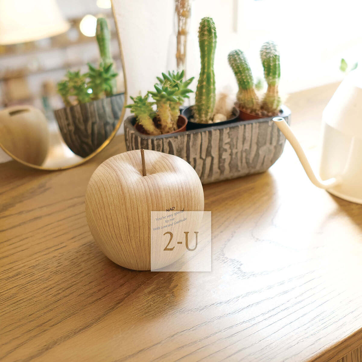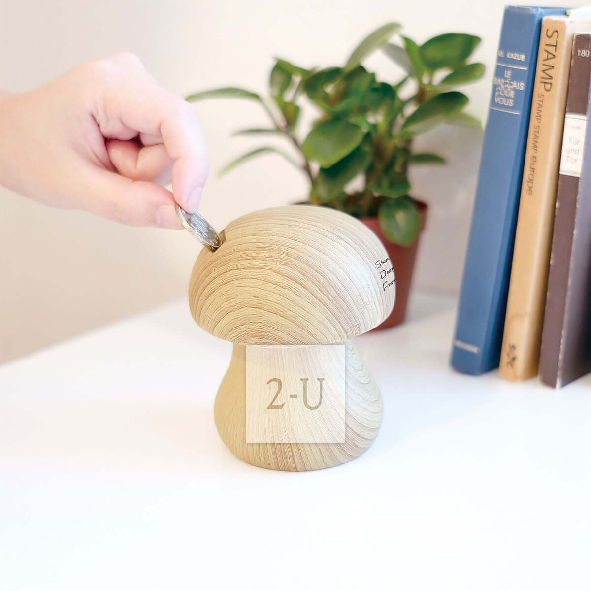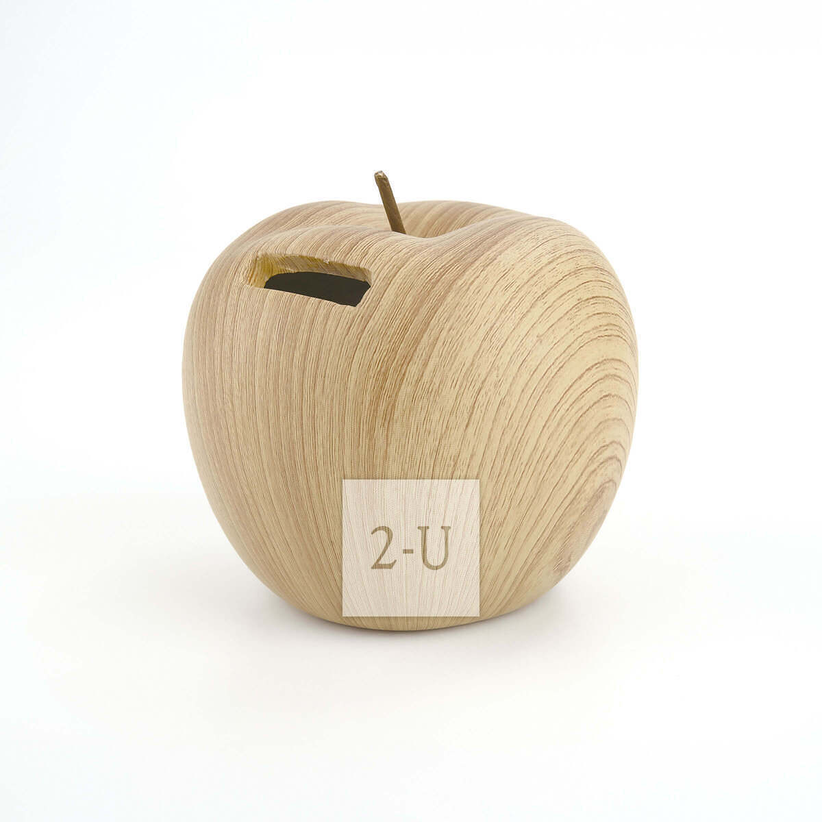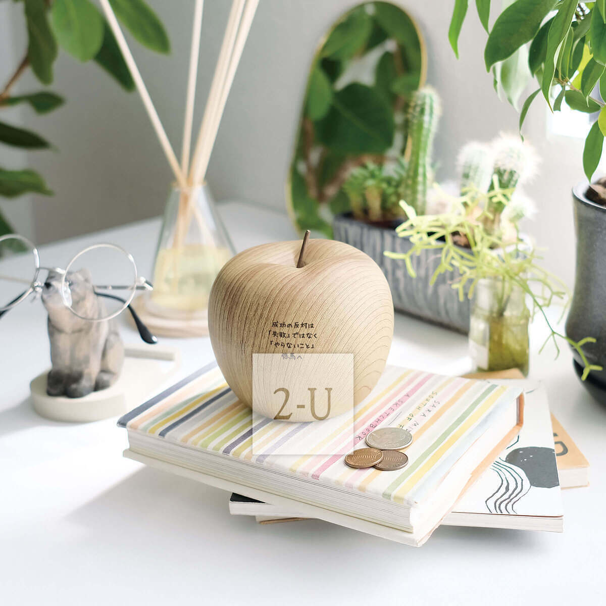 這是一款外觀材質像真實木,然而卻是陶瓷的存錢罐撲滿。形狀為逼真的蘋果梨蘑菇等食物外形,揹部有一個投幣口,可以存放大約6萬日元的500日元硬幣。還可以作為紙鎮使用。