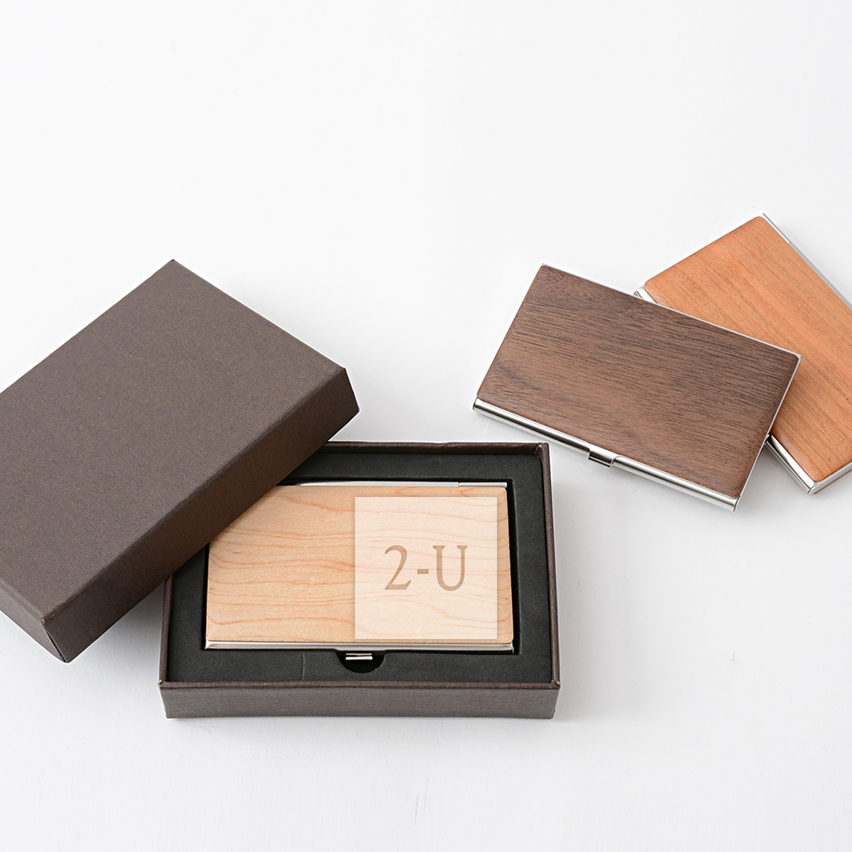 這款名片盒採用天然木材的紋理,手感溫馨。天然材質與不銹鋼材質的優雅對比,在交換名片時定會給人留下深刻印象。