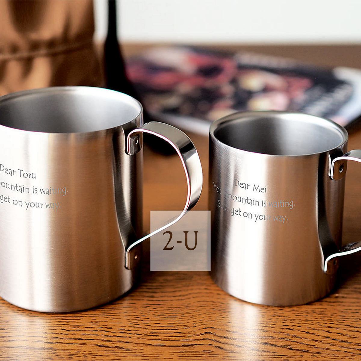 在中文中,“一杯子” 的發音與 “一輩子” 的發音相近。因此,送杯子寓意著“贈送‘倖福的一杯子 = 倖福的一輩子’”,被視為一種吉利的結婚賀禮。如果送上刻有倖福留言的杯子,那麼這份賀禮就會變得更加吉祥如意。就像情侶飯碗一樣的情侶對杯馬剋杯。請定製這樣一份結婚禮物送上倖福吧。