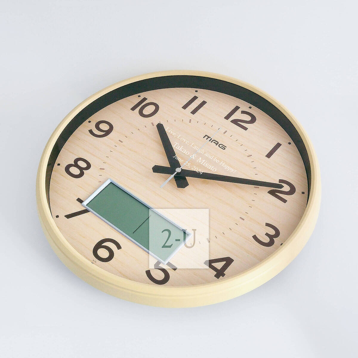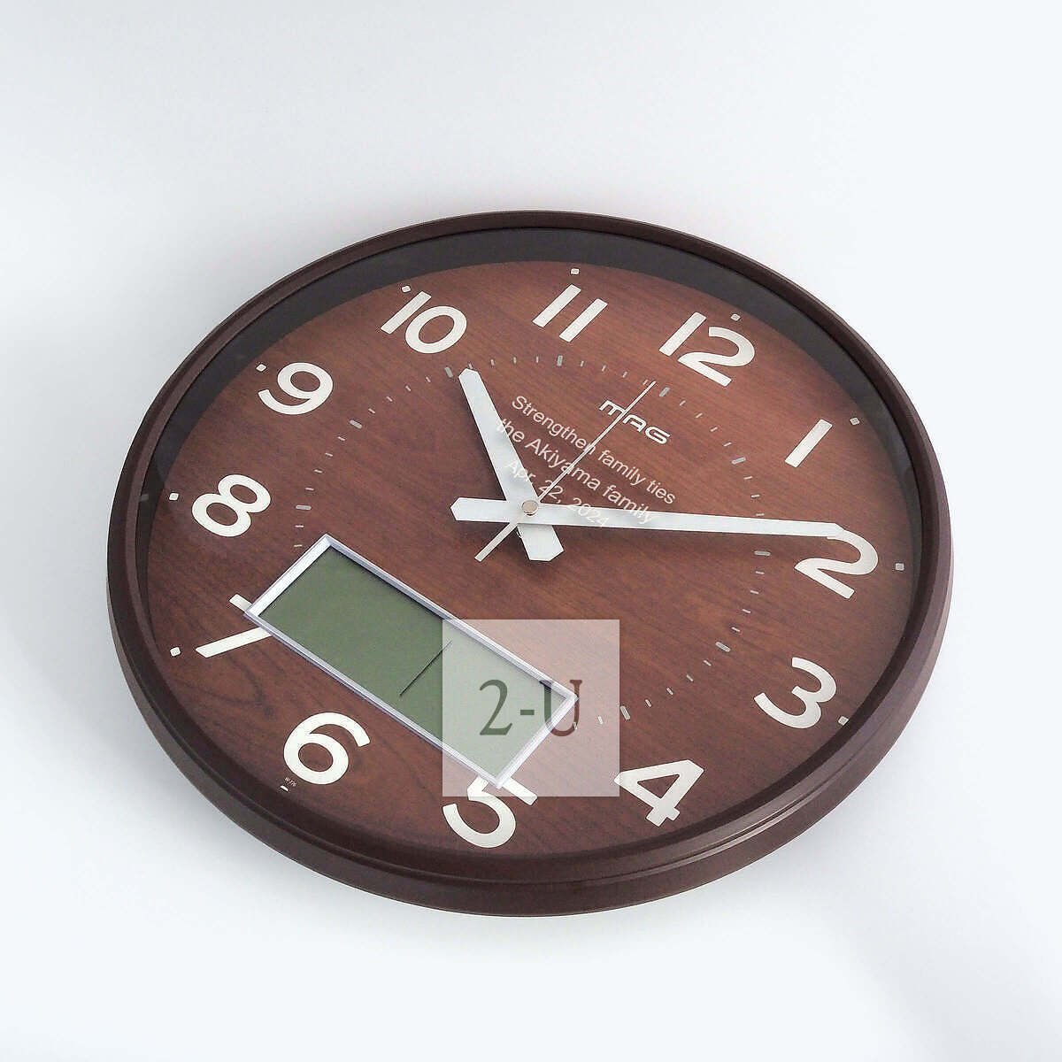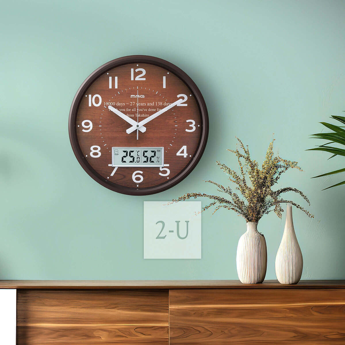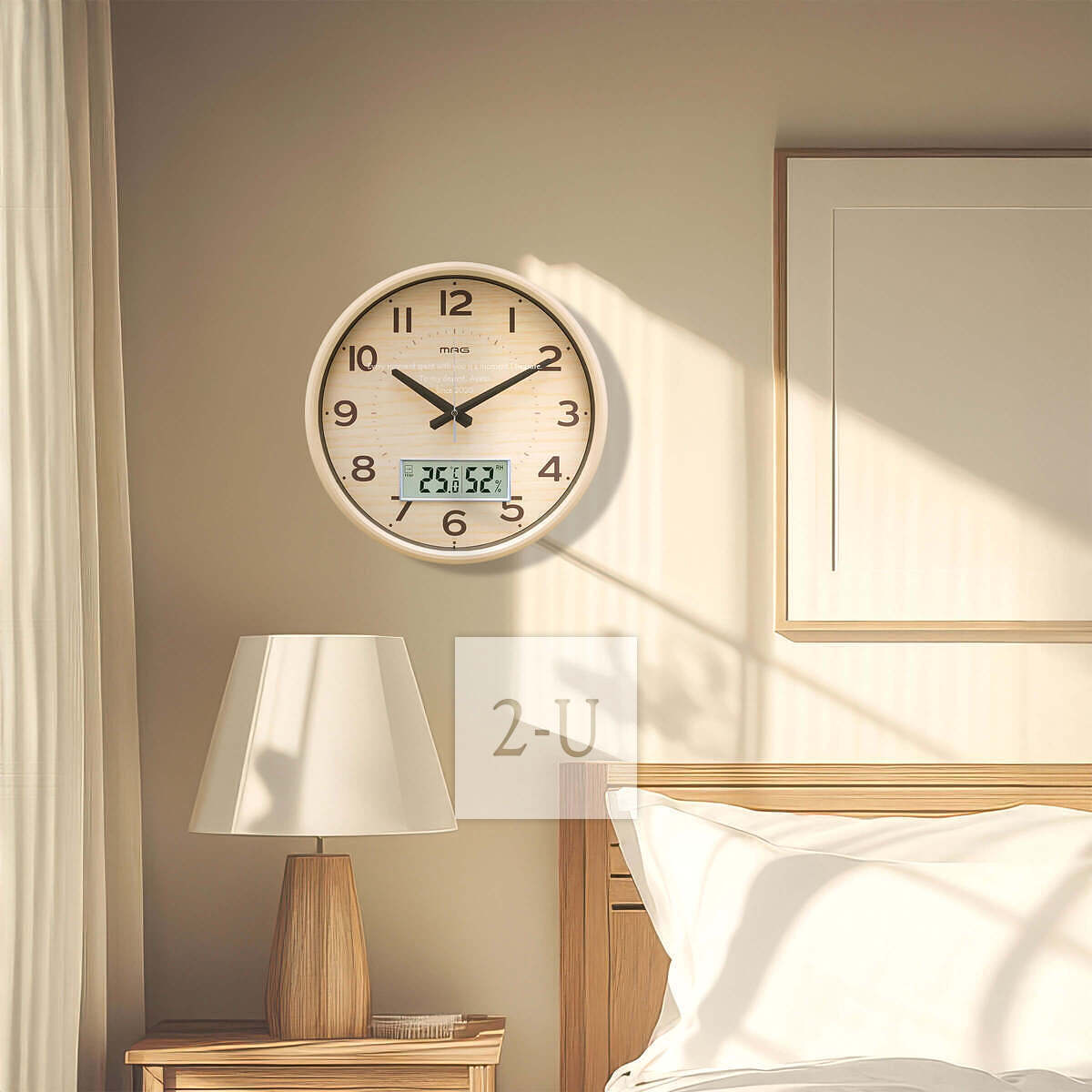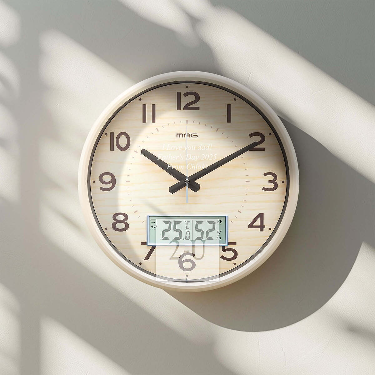 模擬時鐘與數字溫溼度計 (電波時鐘) 原木色