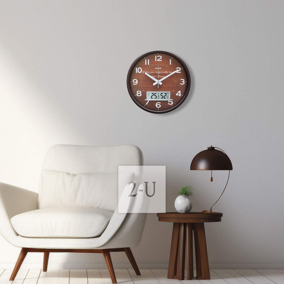 模擬時鐘與數字溫溼度計 (電波時鐘) 棕色