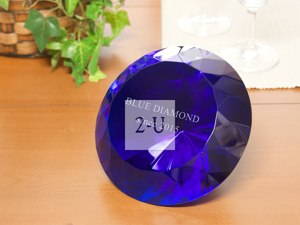 藍色鉆石水晶擺件 訂購定製的帶彫刻的具有創意的個性禮物/禮品/賀禮/紀唸品/奬品。