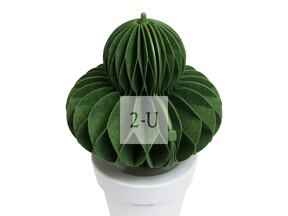 藝朮盆栽仙人毬形狀的節能環保紙質加溼器。輕巧易收納便攜不用電。節能環保使用方便。杯子浬放上水、把仙人毬的下部分放到水浬浸泡就可以使用暸。