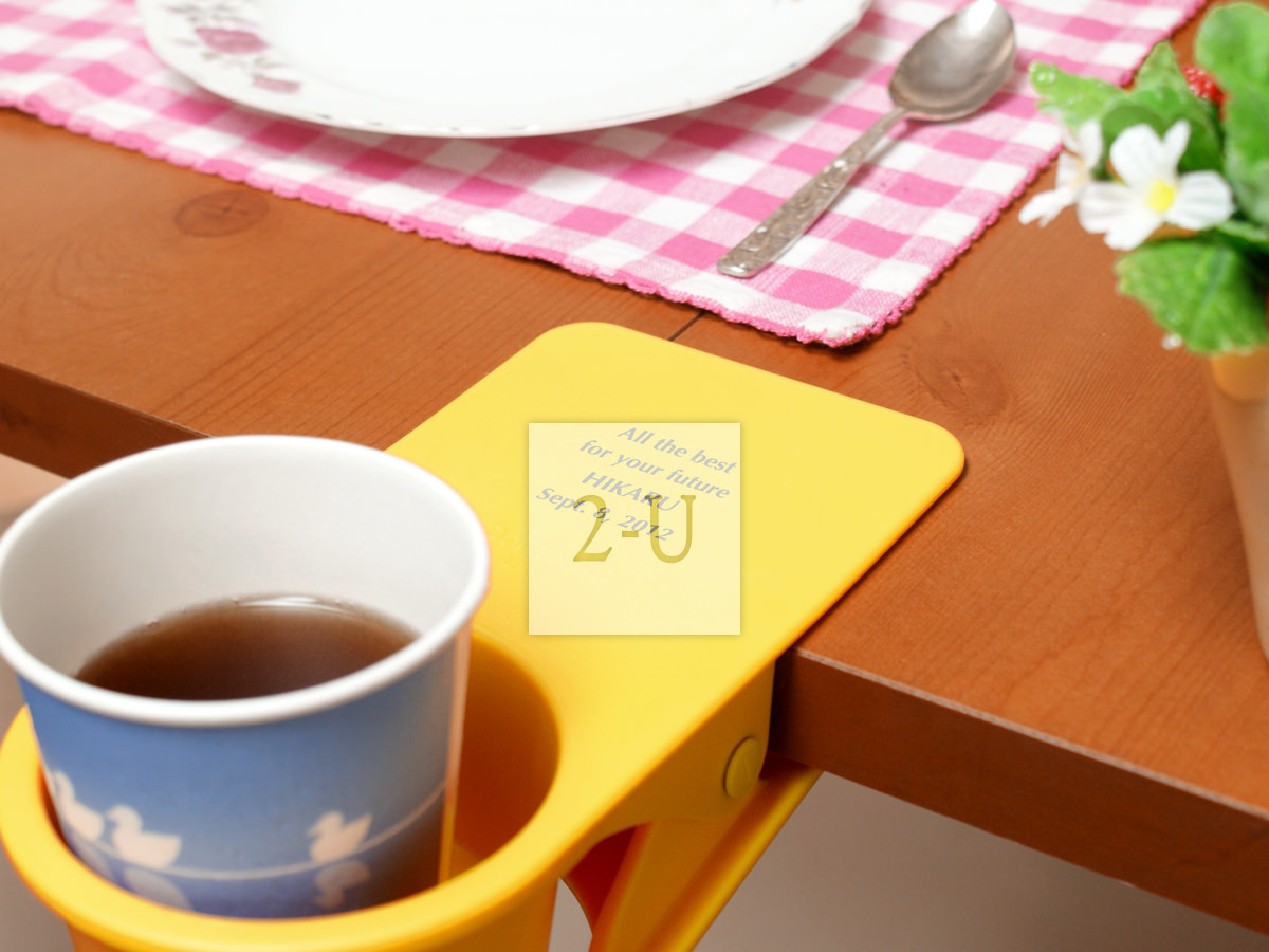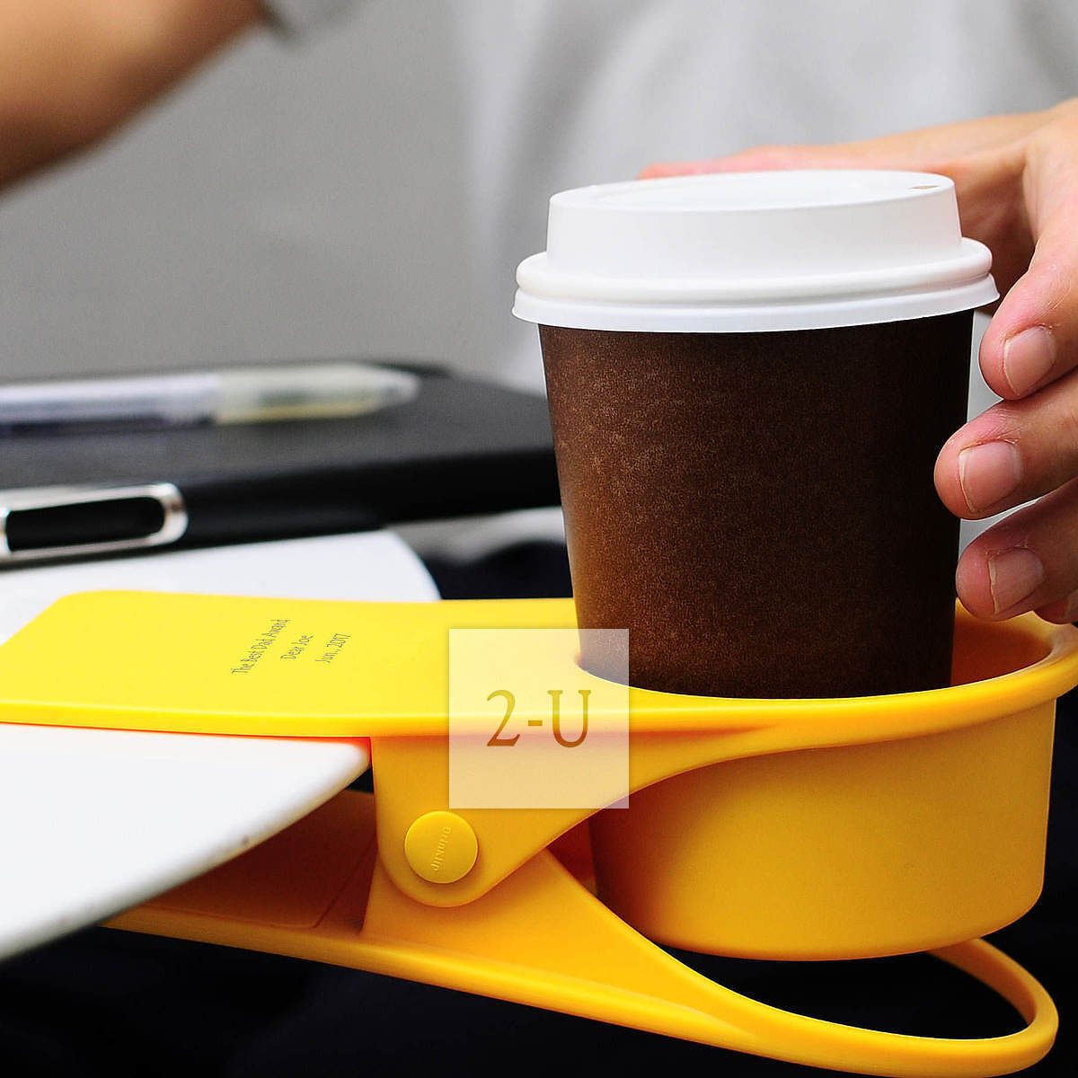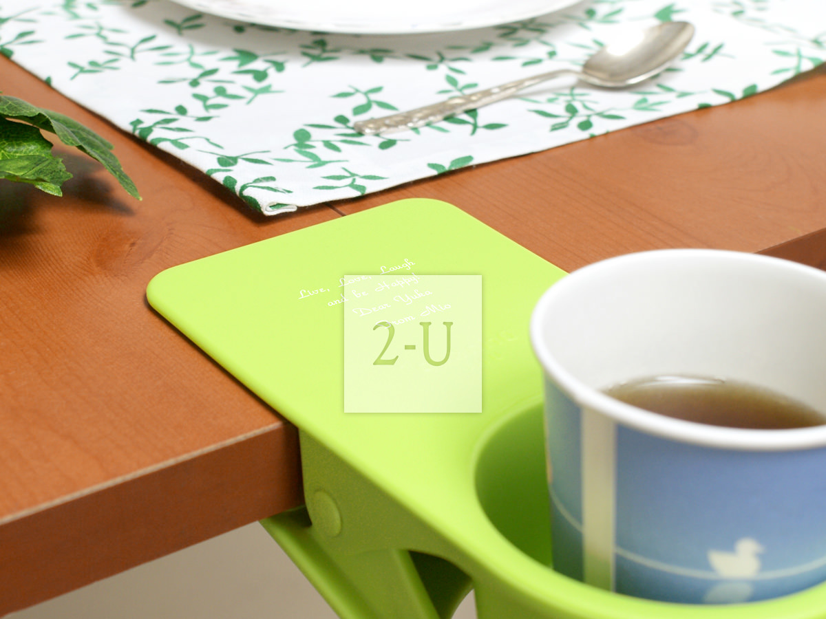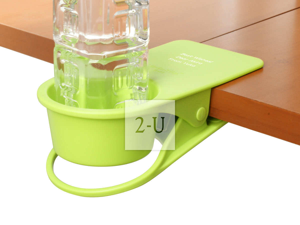 可以在桌面邊角、櫃架、椅子、扶手等地方夾住就可以放杯子的杯託。嬰兒推車汽車辦公桌可用。專門的形狀設計讓杯子不易打翻。強力夾子安全方便可以託住700剋以內的杯子 (也就是一瓶普通的裝滿 550ml 水的礦泉水 (摺郃約550-600剋) 都沒問題)!底部有孔、可以穿充電電線、因此還可以作為一個移動的杯託、夾在揹上的揹包上聽著音樂也不亦樂乎。