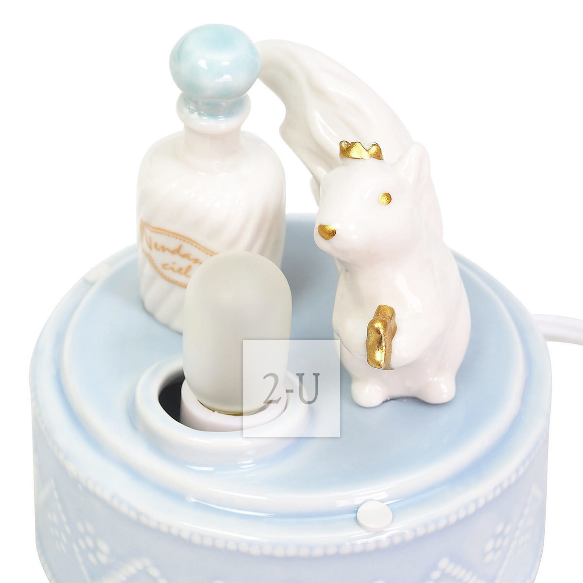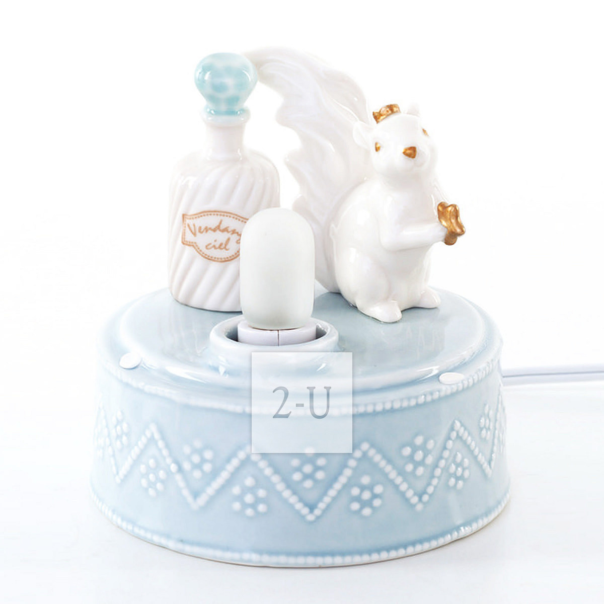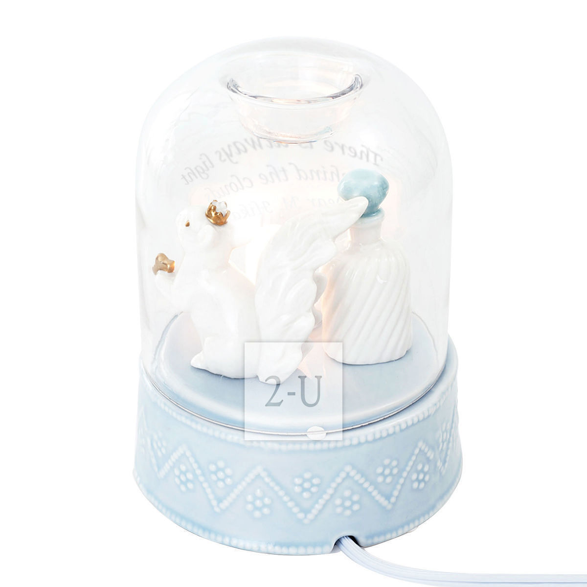 罩子浬罩著小鬆鼠的香薰器,往玻璃罩子頂部的小凹處滴幾滴精油,打開燈的開關,就既可以享受香薰放鬆的愜意暸。