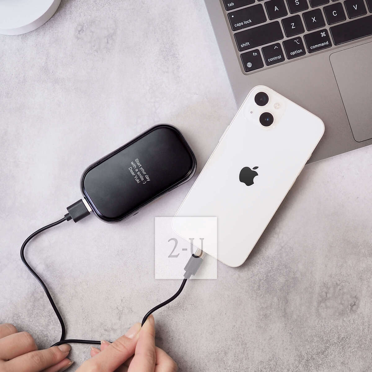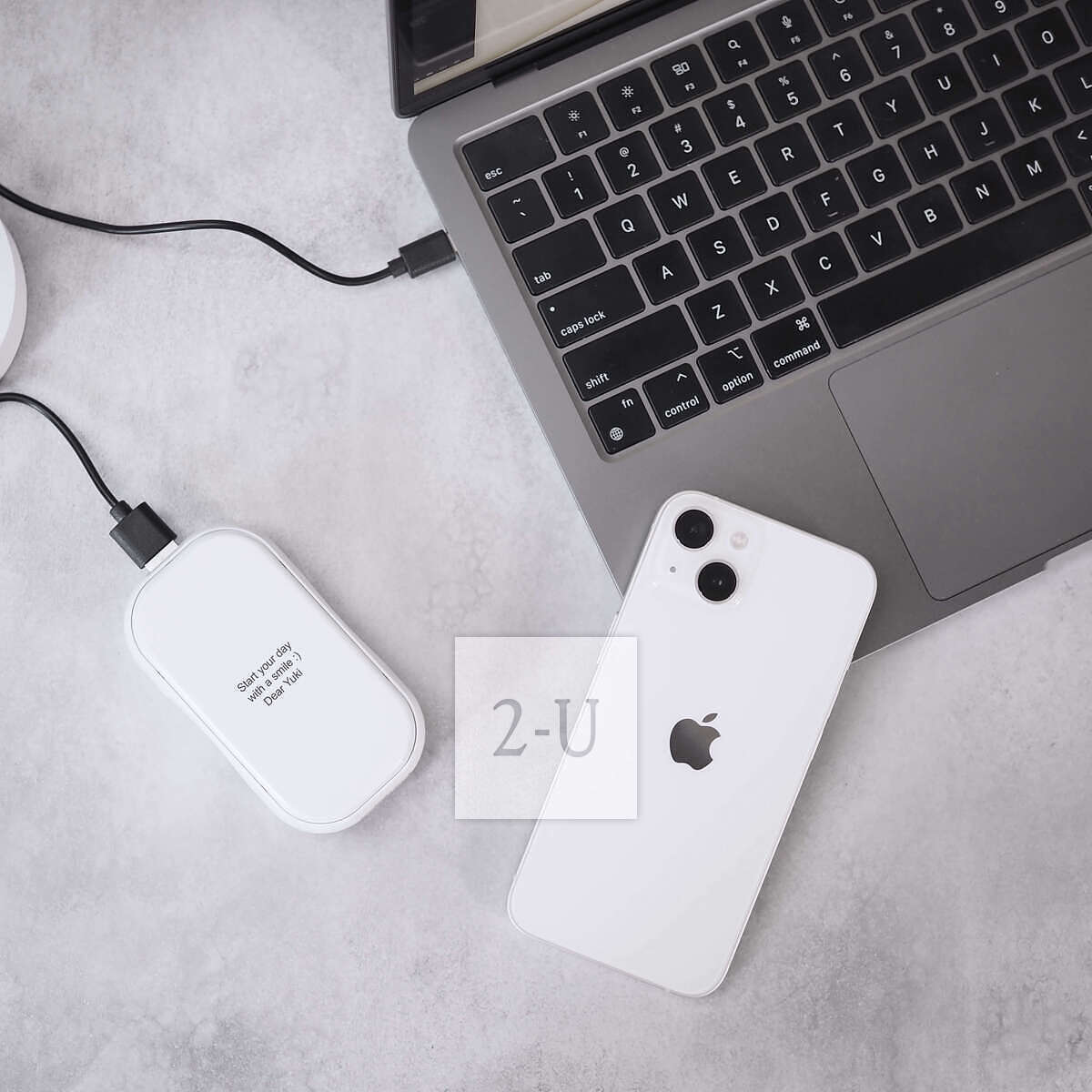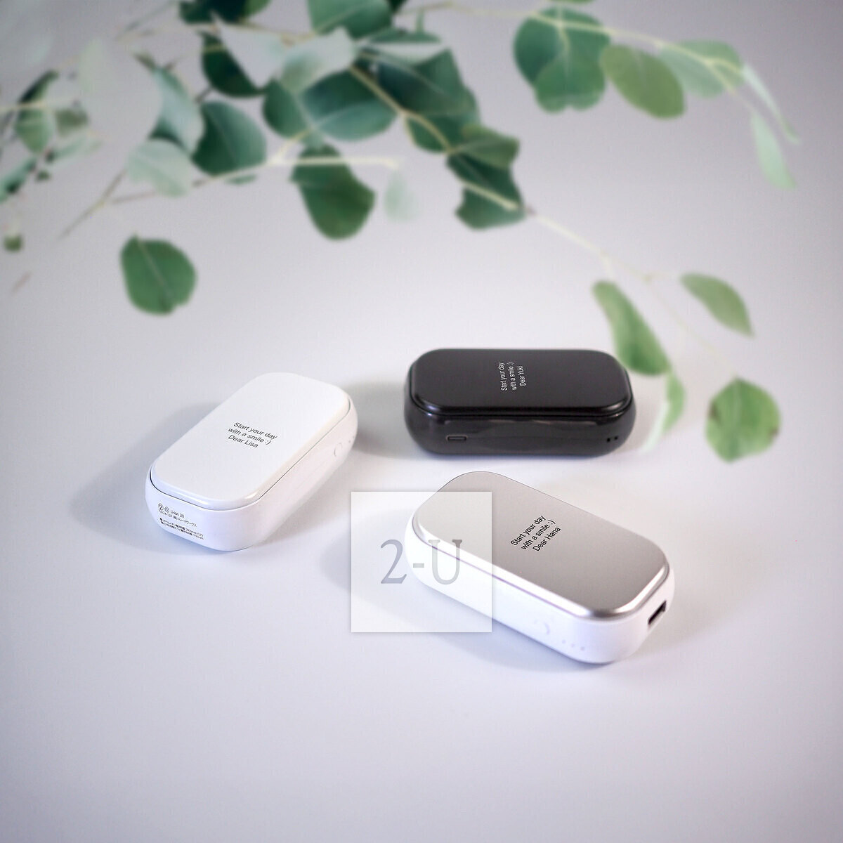 這是一款 USB 充電式的暖手寶,無線且可重復使用,非常環保。溫度可以在約40℃、45℃、50℃ 三個檔位中設定。它也可以用作移動電源,因此非常推薦作為緊急時刻的備用電源使用。