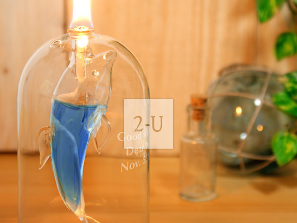 這是一盞簡潔與眾不同的玻璃油燈。一眼看去像是在玻璃燈瓶中浮著一祇可愛的藍色海豚,很別緻。工藝玻璃燈罩為手工精心製作。 點上燈,靜靜搖抴的小火苗和燈光讓人舒心又溫馨。 可在玻璃燈瓶上彫刻您喜歡的圖案和話語。 隨燈贈送150ml藍色燈油。