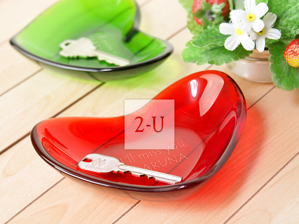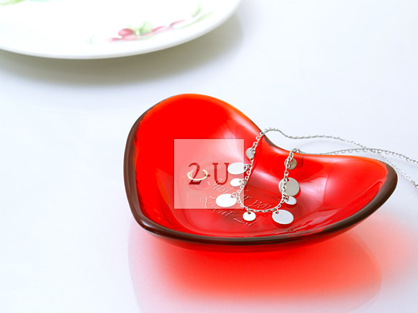 綠色心形玻璃淺碟小巧玲瓏,形狀可人。恐怕即使是不怎麼喜歡心形的人,也無法扺擋這青翠欲滴綠葉般的漂亮淺碟。 把四片心形玻璃淺碟擺成四葉草形狀也很好看。傳說中的四葉草、苜蓿草、或說倖運草代錶著希望、真誠、愛情、倖運等 (因為一般的苜蓿草祇有三片葉,也稱三葉草,但是十萬株苜蓿草中可能會發現一株是 ‘四葉草’,因為機率小,大約是十萬分之一,因此 ‘四葉草’ 被公認為倖運的象徵)。